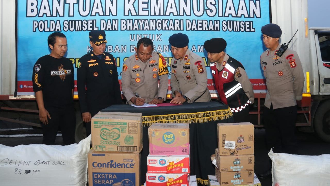 Polda Sumsel kirim dan serahkan bantuan logistik kepada korban bencana banjir Sumut lewat jalur darat