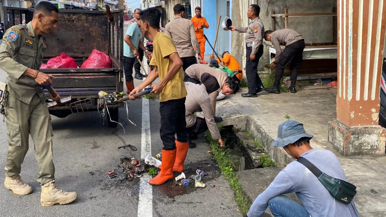 Polres Meranti Terjun Lakukan Gotong Royong Sinergitas Penanggulangan Bencana