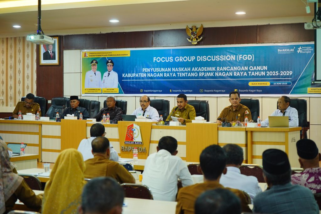 Suka Makmue,Buser24jam com – Badan Perencanaan Pembangunan Daerah (Bappeda) Kabupaten Nagan Raya, Provinsi Aceh, menggelar Focus Group Discussion (FGD) dalam rangka penyusunan Naskah Akademik Rancangan Qanun Kabupaten Nagan Raya tentang Rencana Pembangunan Jangka Menengah Kabupaten (RPJMK) Nagan Raya Tahun 2025-2029.