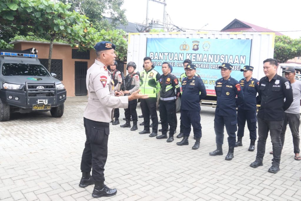 Kegiatan tersebut dipimpin langsung oleh Danyon C Pelopor Sat Brimob Polda Sumsel, Kompol Yuliko, S.H., yang bertindak sebagai Perwira Pengendali (Pamendal) dalam operasi pengawalan logistik kemanusiaan. Bertempat di Kecamatan Kota Pinang, Kabupaten Labuhan Batu, Kompol Yuliko memberikan arahan teknis serta penekanan penting kepada seluruh personel sebelum rombongan melanjutkan perjalanan menuju titik distribusi bantuan.