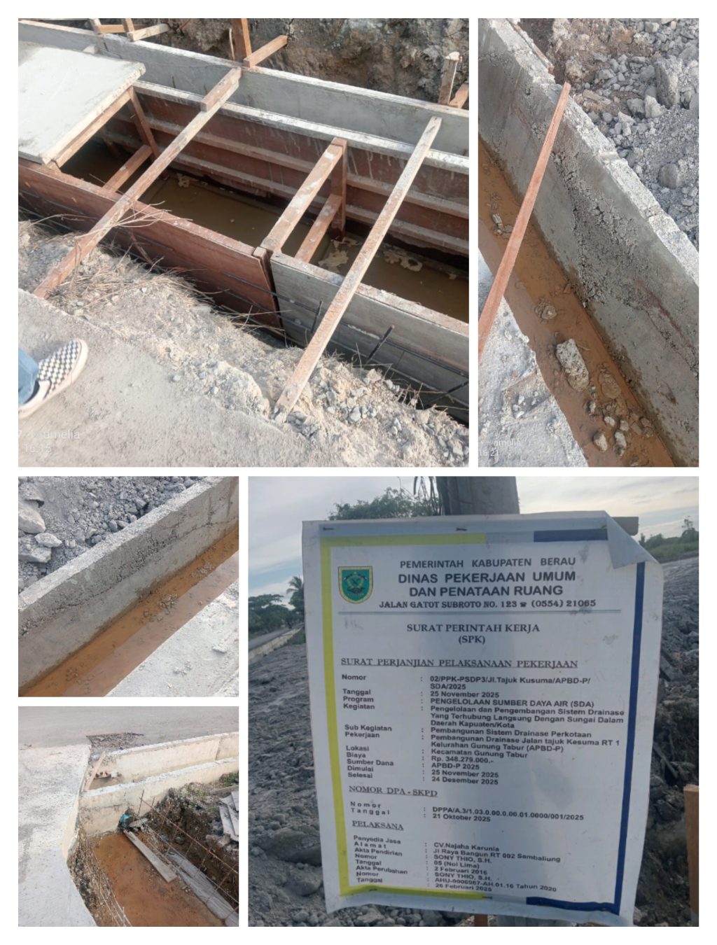 Dari papan informasi proyek yang terpasang di lokasi, kegiatan tersebut merupakan Pembangunan Sistem Drainase Perkotaan di bawah naungan Dinas Pekerjaan Umum dan Penataan Ruang (PUPR) Kabupaten Berau, dengan sumber dana APBD-P Tahun 2025. Namun fakta di lapangan justru memperlihatkan hasil pekerjaan yang dinilai jauh dari kata maksimal.