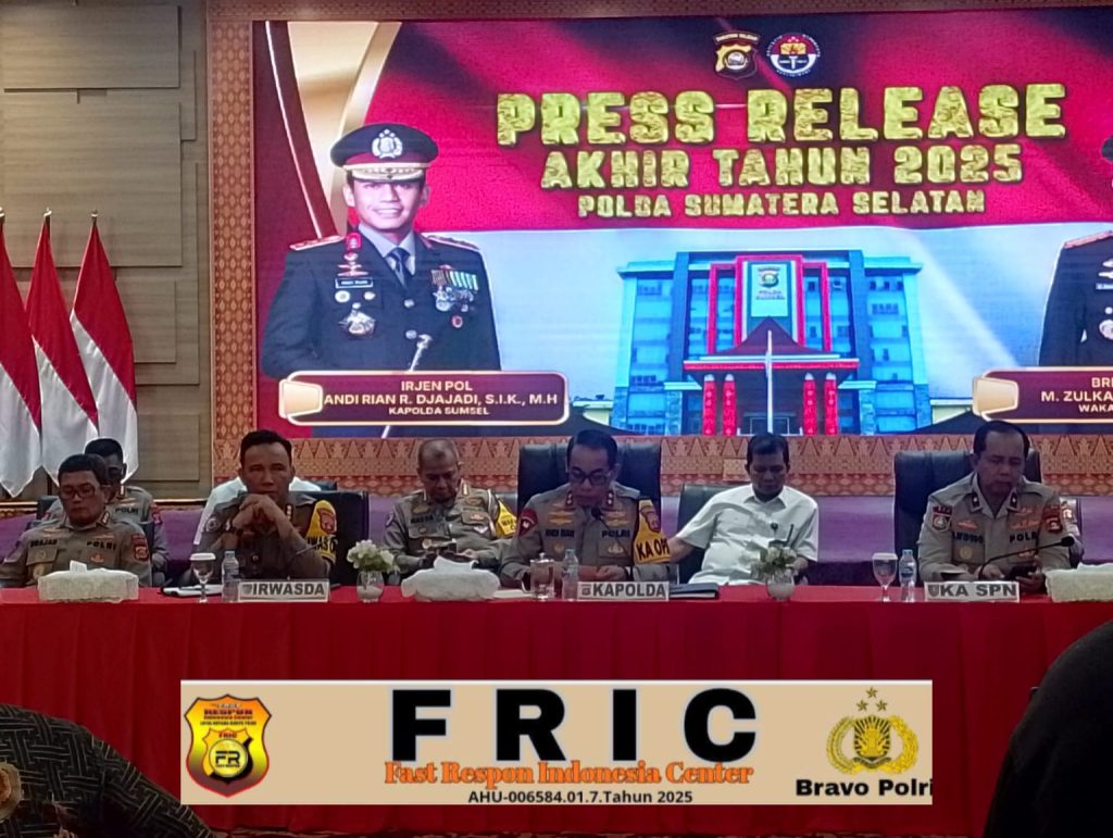 Buser24jam.com, Palembang – 31 Desember 2025 – Kapolda Sumatera Selatan (Sumsel) Irjen Pol Andi Rian R. Djajadi menyampaikan press release akhir tahun 2025 di Ruang Auditorium gedung Markas Kepolisian Daerah (Mapolda) Sumsel lantai 7. Kegiatan ini dihadiri oleh berbagai rekan media serta redaksi dari media elektronik dan online ekstrim.