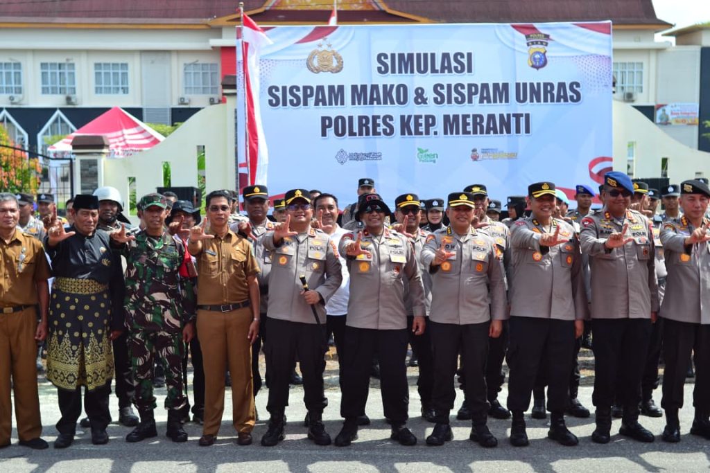 Buser24jam. Meranti – Polres Kepulauan Meranti, Polda Riau, menggelar simulasi gabungan sistem pengamanan markas komando (Sispam Mako) dan sistem pengamanan unjuk rasa di halaman Mapolres Kepulauan Meranti, Senin (27/10/2025).
