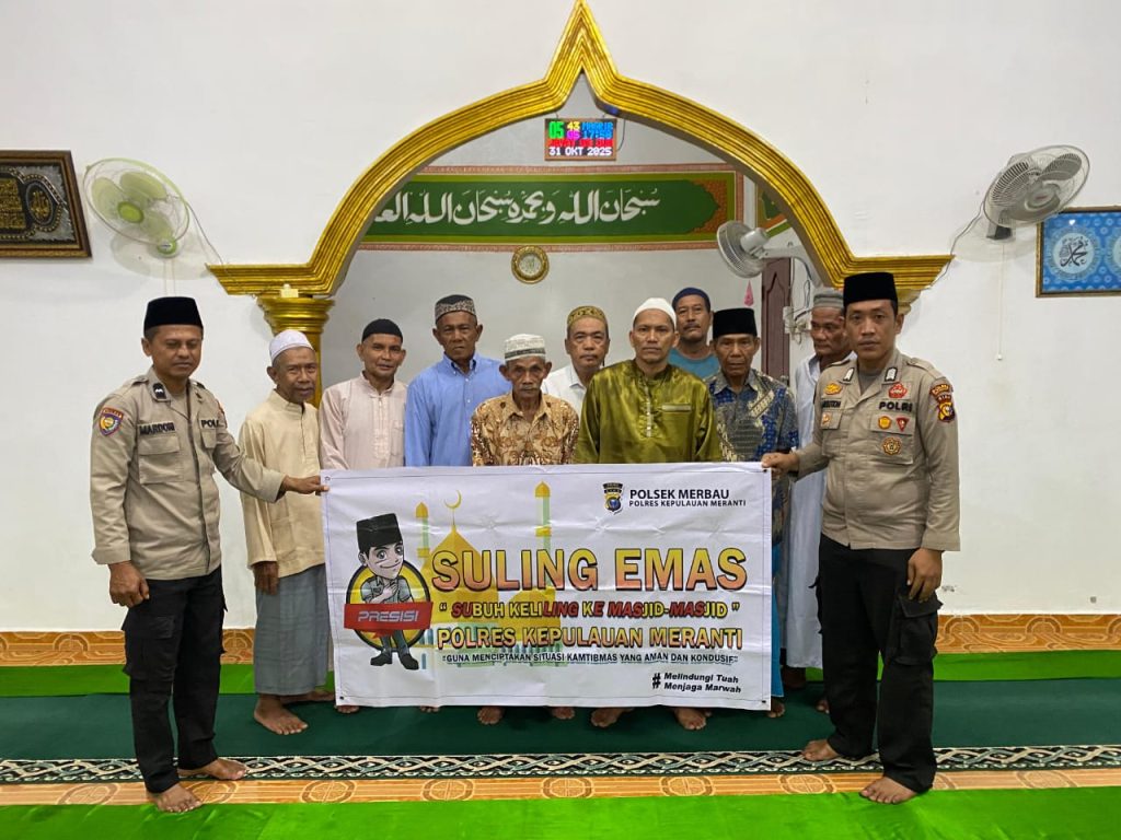 Buser24jam. Meranti – Dalam upaya mempererat silaturahmi dengan masyarakat sekaligus menjaga keamanan dan ketertiban di lingkungan rumah ibadah, Polres Kepulauan Meranti, Polda Riau, terus menggiatkan program Subuh Keliling ke Masjid-Masjid (Suling Emas).