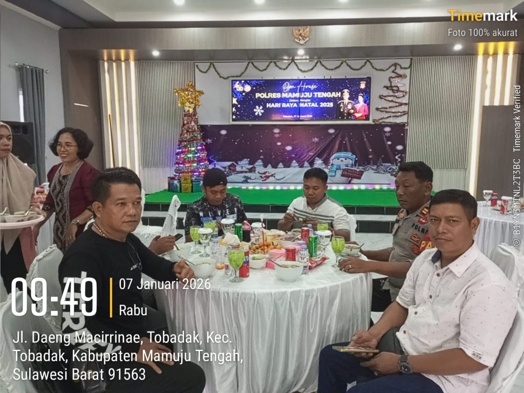 Buser24jam com,Mamuju Tengah – Sebagai bentuk komitmen menjaga kerukunan dan toleransi antar umat beragama, Polres Mamuju Tengah (Mateng), Polda Sulawesi Barat, menggelar open house perayaan Hari Raya Natal 2025 di Aula Wicaksana Laghawa Mapolres Mateng, Rabu, 7 Januari 2025.