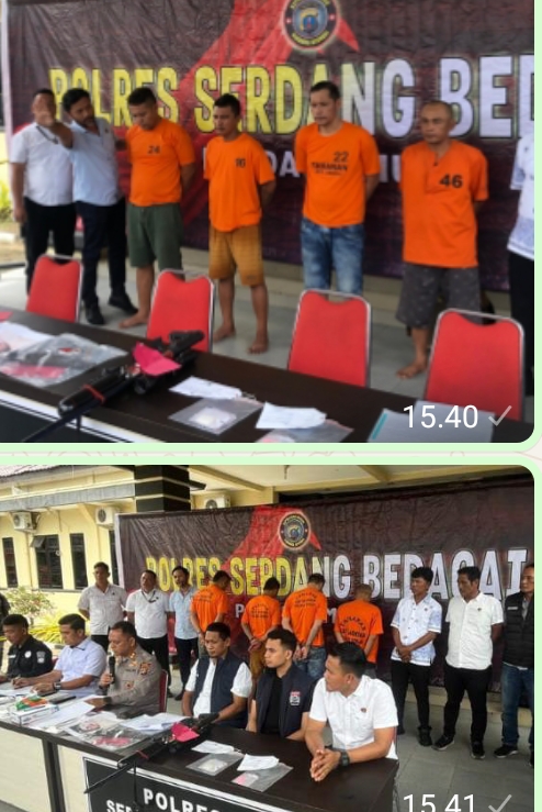 Lanjut Kapolres keempat terduga pelaku di grebek dan di tangkap pada dua lokasi strategis, yaitu Penangkapan di Tol Perbaungan (21/9/2025). Berdasar informasi intelijen mengungkap terduga pelaku Muhammad Saprin sedang dalam perjalanan dari Medan menuju Serdang Bedagai.