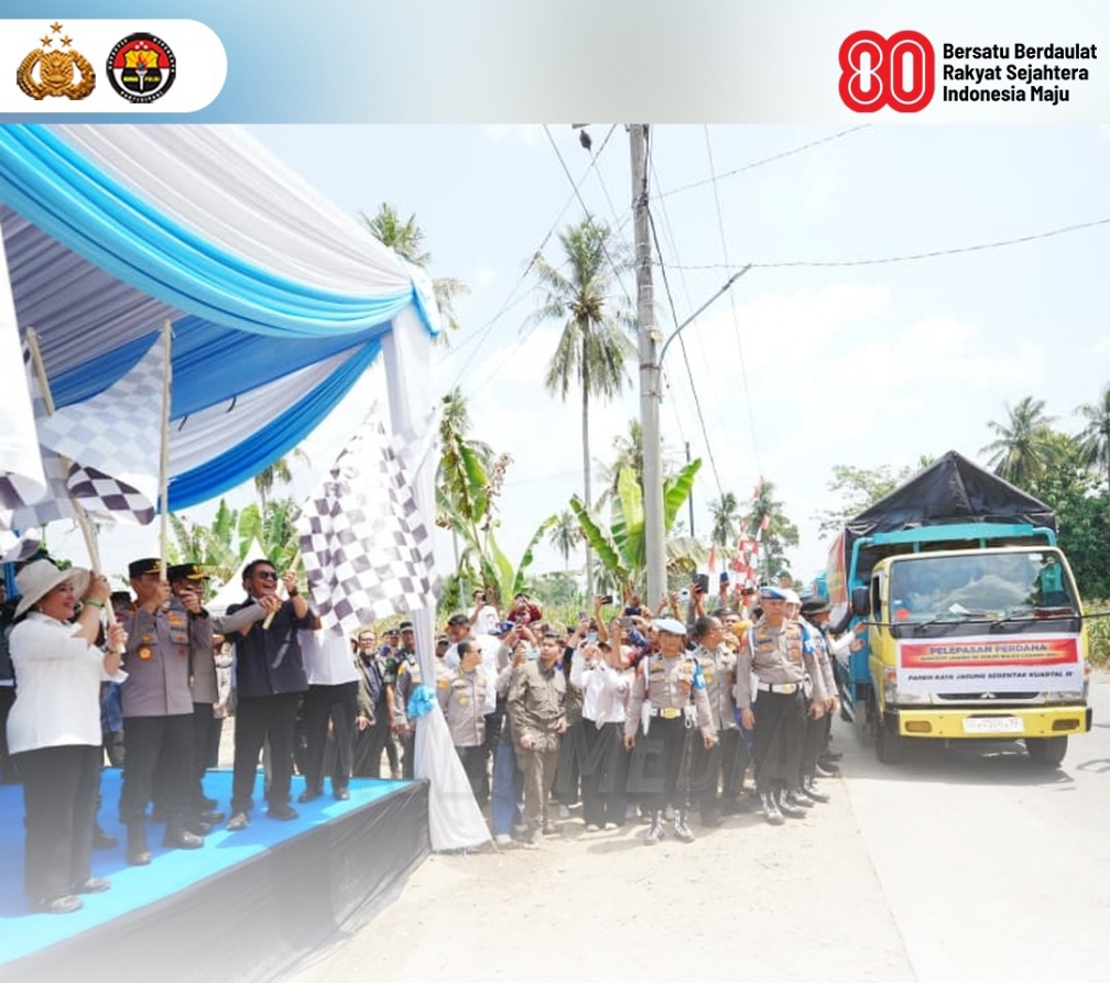 Buser24jam.com – Melaksanakan flag off distribusi jagung hasil Panen Raya Jagung Serentak Kuartal III Tahun 2025 di Kabupaten Ogan Komering Ulu (OKU) Timur, Sumatera Selatan, Sabtu (27/9). Gerakan distribusi ini menjadi bukti nyata bahwa Polri tidak hanya turun langsung dalam pendampingan budidaya jagung, tetapi juga memastikan hasil panen terserap dengan baik ke gudang Bulog.