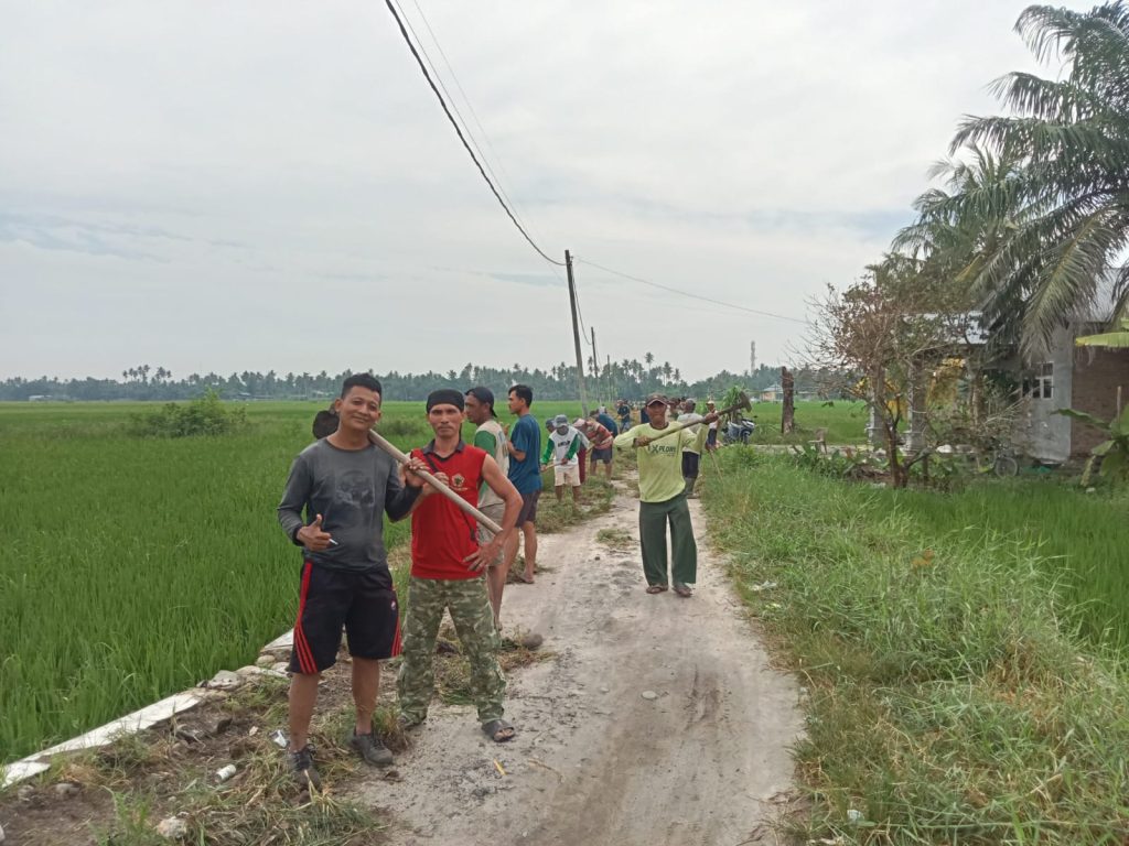 Sekitar 50 warga bergotong royong membersihkan, melebarkan, dan meratakan jalan alternatif menuju Desa Pematang Pelintahan, kecamatan tetangga yang vital sebagai penghubung antar desa sekaligus penunjang ekonomi dan distribusi hasil pertanian warga.