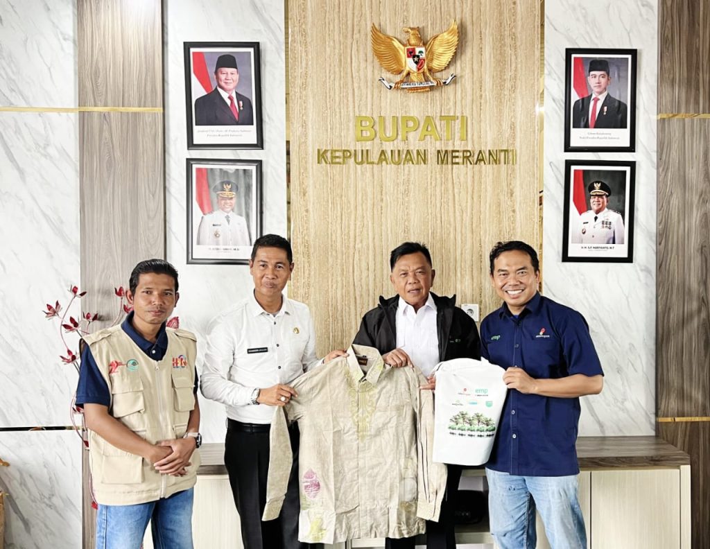 Selain memberikan bantuan sosial, PT EMP juga menyerahkan contoh batik khas Kepulauan Meranti kepada Pemerintah Daerah. Batik tersebut dibuat dengan menggunakan bahan berkualitas dan pewarna alami yang berasal dari tanaman sagu serta mangrove (bakau), yang menjadi ciri khas daerah pesisir Meranti.